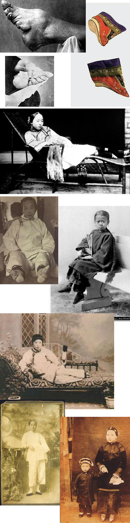 ¡ßÀüÁ· = Áß±¹¿¡¼ ¿©ÀÚÀÇ ¹ßÀ» ÀÎÀ§ÀûÀ¸·Î ÀÛ°Ô Çϱâ À§ÇÏ¿© Çë°ÒÀ¸·Î ¹´ø dz½ÀÀ» ¸»ÇÑ´Ù. ¸í´ë(Ù¥ÓÛ)¿¡ ƯÈ÷ ¼ºÇàÇßÀ¸¸ç, û´ë¿¡´Â ¸¸ÁÖÀο¡°Ôµµ À¯ÇàÇÒ Á¶ÁüÀÌ º¸¿© 1664³â ±ÝÁö·ÉÀ» ³»¸®±âµµ Çß´Ù. ±×ÈÄ 1894³â¿¡´Â ¼ÅÂÈÄ(à¤÷¼ý¨)°¡ ±ÝÁö·ÉÀ» ³»·Á ¼èÅðÇϱ⠽ÃÀÛÇßÀ¸³ª ''¼Ò°¢(á³ÊÅ:ÀüÁ·À» ÇÑ ¹ß)''¿¡ ºñÇØ ''´ë°¢(ÓÞÊÅ:ÀüÁ·À» ÇÏÁö ¾ÊÀº ¹ß)''Àº õ½ÃµÆ´Ù.